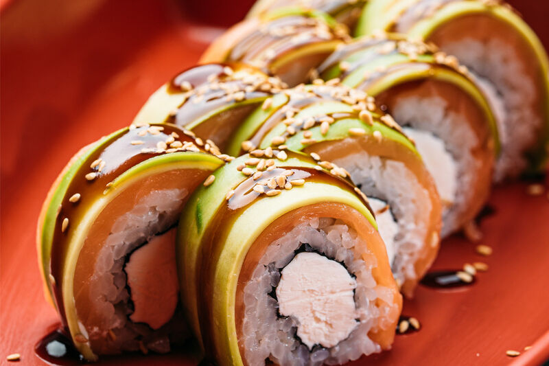 Ролл с лососем и авокадо